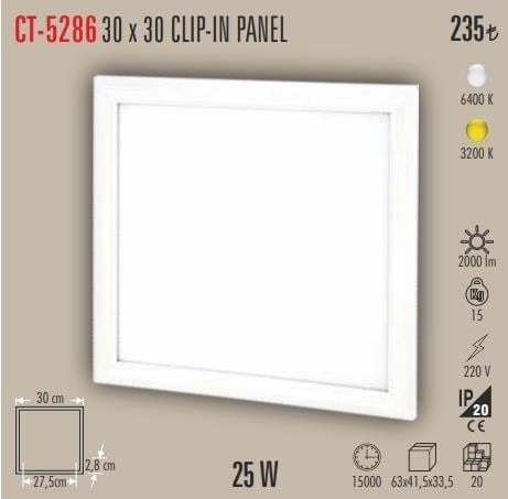 CATA 5286 25 W 30*30 CLIP-IN LED PANEL